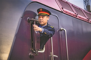 王振強目視前方,右手緊握著操縱手柄。這名“85后”小伙子,是有著75年光輝歷史的 “毛澤東號”機車組第十三任司機長。安全駕駛機車1300余趟,王振強先后獲得首都勞動獎章、全國最美職工、全國五一勞動獎章等榮譽稱號。