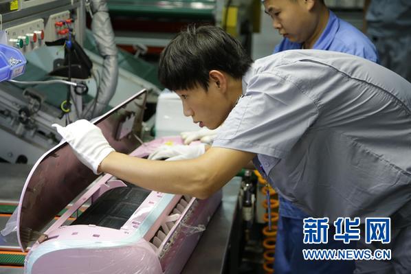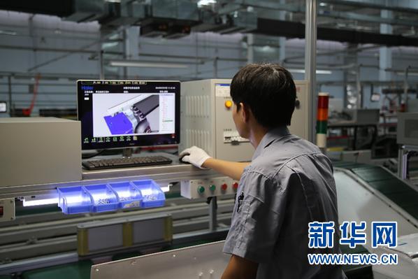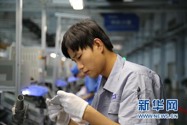 王陽陽在智能化生產(chǎn)線上工作。新華網(wǎng)記者 何中然 攝