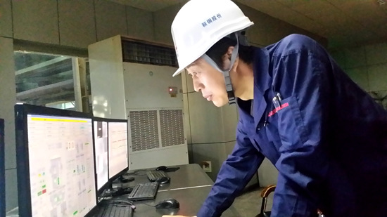 林學斌在操作臺上通過監測系統監測生產線狀態