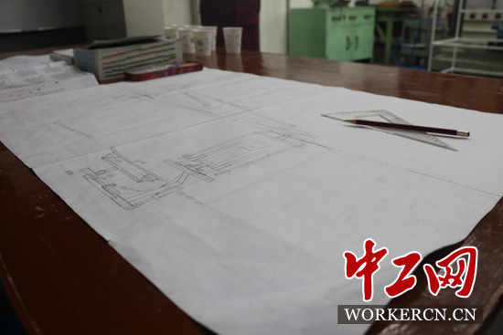 盛保柱繪制的圖紙。中工網記者葛文琦攝。