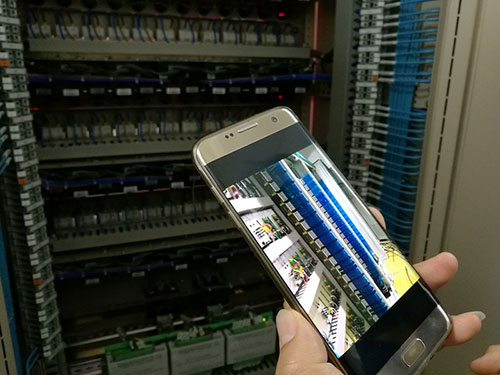 在檢查繼電保護小室的線路時,他連開了幾個柜門,都搖搖頭。原來是嫌電線整理得不整齊。他隨手從手機里翻出一張照片說對記者說:“要做到這種程度才可以。”照片中,藍色的電線經緯排布,一絲不茍。