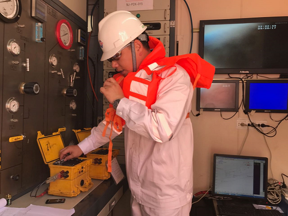 某管線改線項目,漆黑的水下,旁邊是高達十幾米的干式艙,楚金勇只能通過雙手感知干式艙和海管的角度、高度和左右距離,并不停指揮甲板絞車牽引調整干式艙的位置。如果發生磕碰,不僅可能傷害海管,而且也可能對他自己造成人身傷害。沉著、冷靜,楚金勇不停地探摸確認位置,指揮調整狀態,抓住最佳時機一次安裝到位,創造了原油管線不停輸成功安裝干式艙群的記錄。