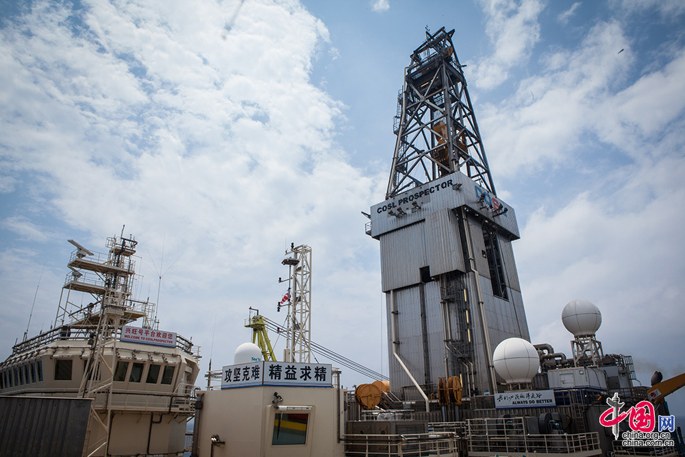 “興旺號”深水鉆井平臺正在進行電測作業。中國網記者 倫曉璇 攝
