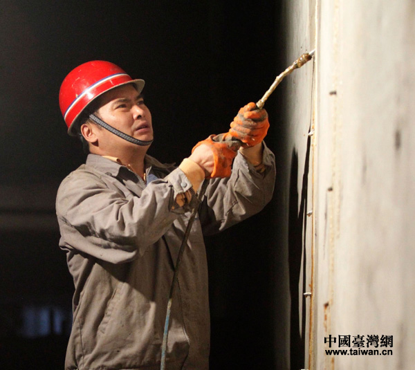 杜天剛在進行防滲堵漏作業。(重慶市建筑灌漿防滲技術協會供圖 中國臺灣網發)