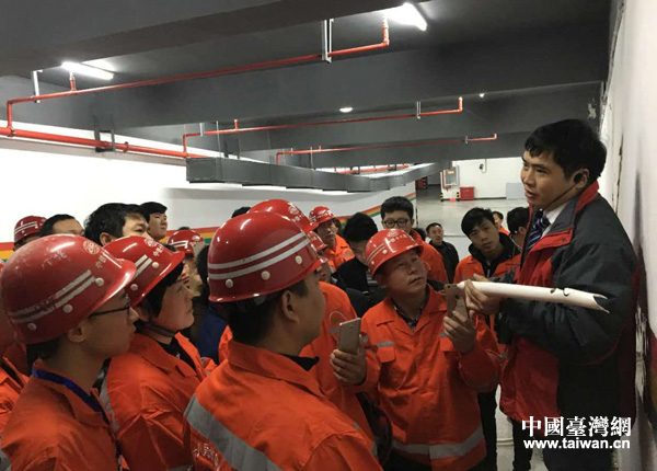 杜天剛在向工人們講解防滲堵漏技術。(重慶市建筑灌漿防滲技術協會供圖 中國臺灣網發)