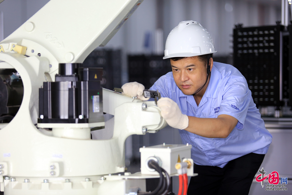 劉源在自己的崗位上兢兢業業,將工作室作為機電維修高技能人才的培訓基地,培養了一批又一批的人才。目前,劉源已為企業培養出了全國技術能手5名、公司技能專家8名。這些學員在各自的崗位上發揮著舉足輕重的作用,劉源也在2015年獲得國家人才培養突出貢獻獎。(中國網 楊楠 攝影報道)