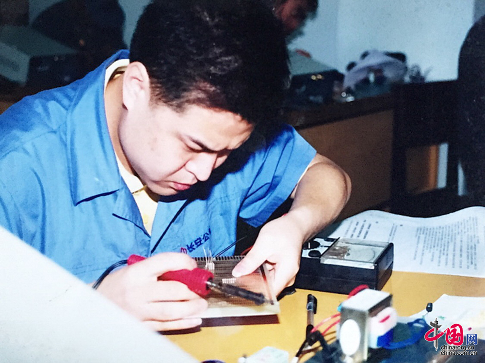 劉源從小就看著父親擺弄各種電子元器件,漸漸對電器維修產生了興趣。15歲左右,就正式“拜”父親為師,系統學習電器維修,從最基礎的認識電阻、電容、晶體三級管學起。中專選擇了電子電器專業。16歲時,他子承父業進入長安廠,成為一名維修工人。