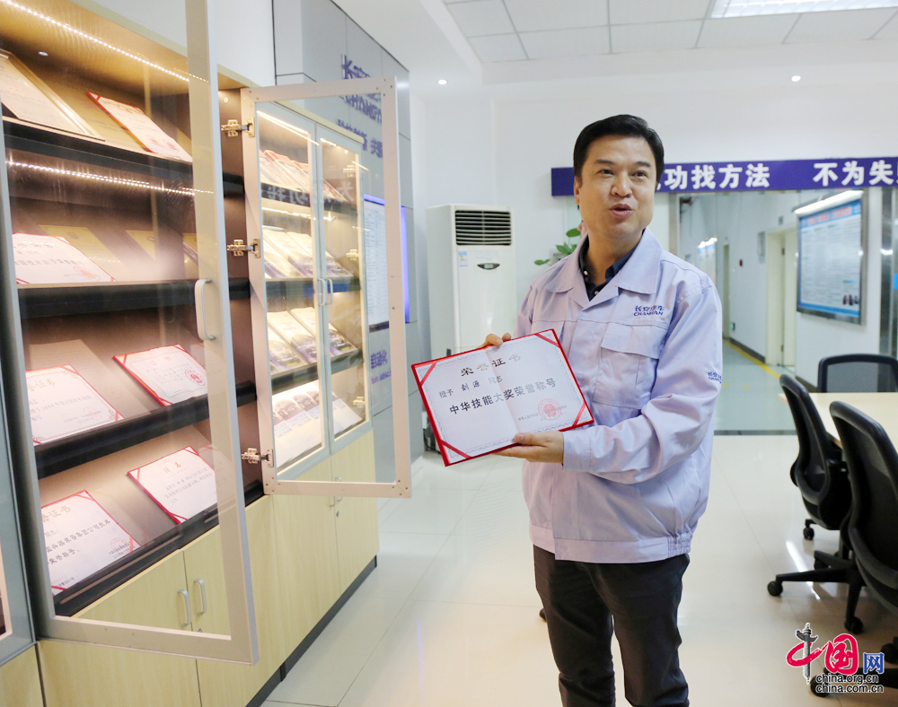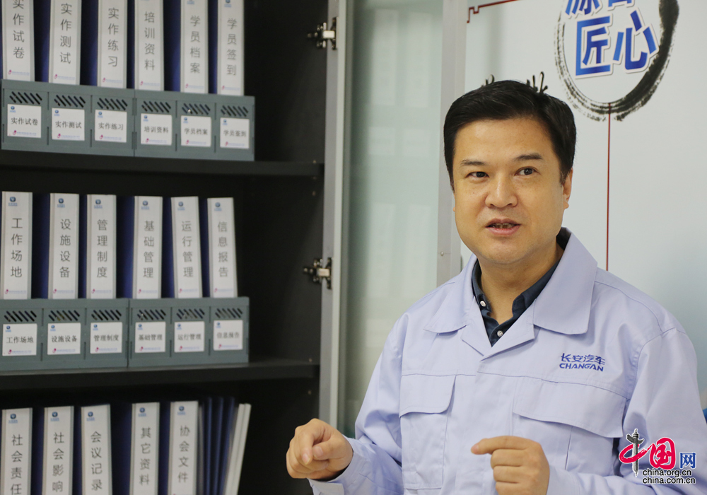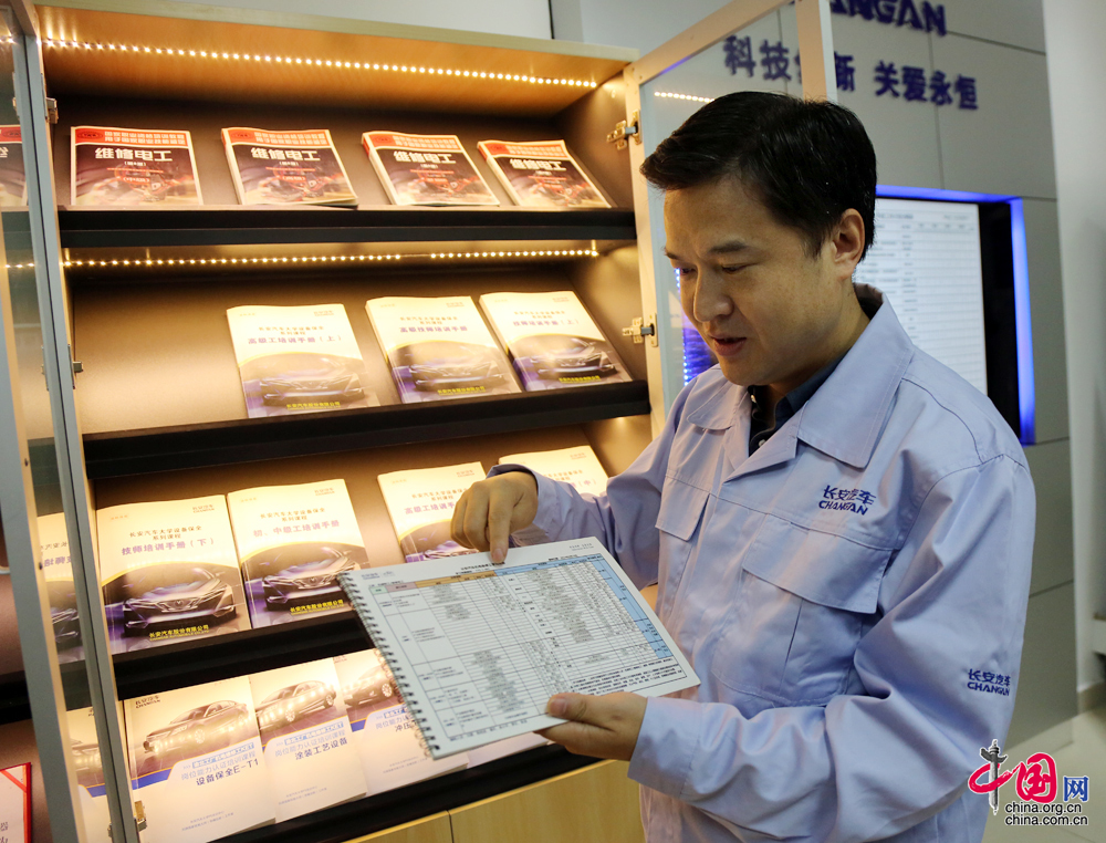 劉源發起了將廠里先進維修案例、技術、經驗“留下來”的工作。先后編制了《長安汽車大學設備保全系列課程——高級工培訓手冊》(上中下冊),里面收集了長安集團建廠以來的很多維修案例,是一個關于設備維修的百科全書。(中國網 楊楠 攝影報道)