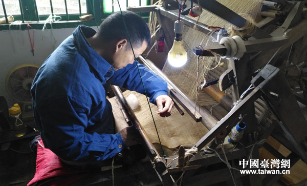 李儉康在織布,這是成品的最后一步。(中國臺灣網 王文英攝)