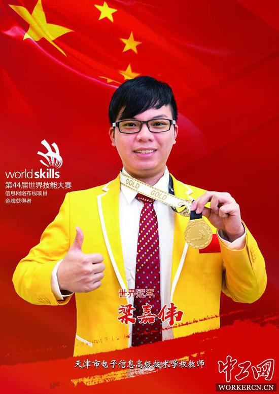 技能強,中國強,作為職業學校教師,能夠站上世界技能巔峰,參加世界技能大賽,奪取金牌。梁嘉偉,天津市電子信息高級技術學校網絡布線專業實訓教師,用執著和堅毅,專注于一遍遍的自我超越,用汗水和努力,打破了日本一直在這個項目上的壟斷。