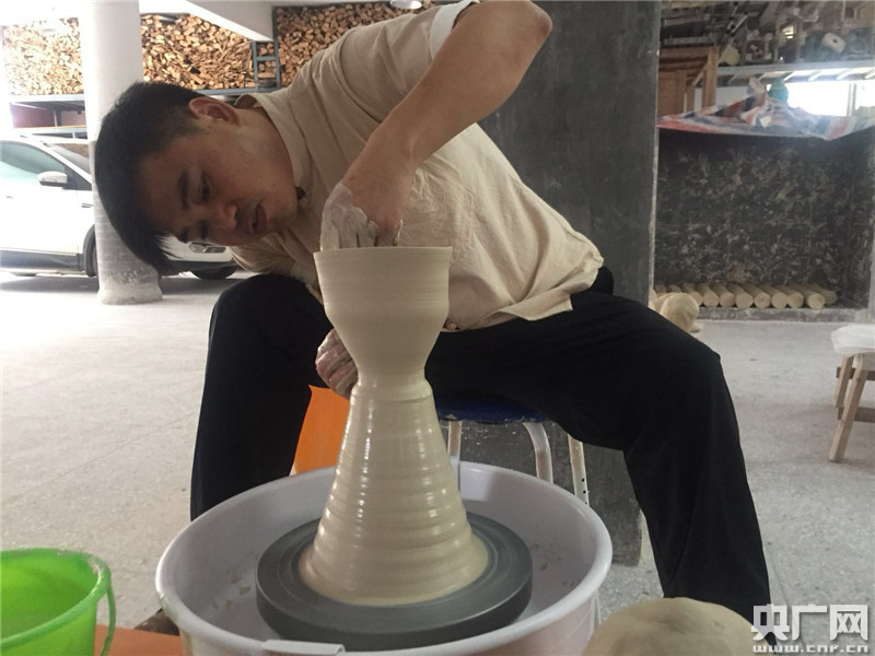 看上去似乎“輕而易舉”的拉坯過程,濃縮的是占紹林20年如一日的堅持和鉆研。“拉坯是一件很枯燥的事情,但通過你的堅持和創新,一件件新鮮玩意兒在你手中誕生,又是一件特別有樂趣的事情。”占紹林告訴記者,時至今日,拉坯對于他來說,始終源于興趣,而決非機械性重復的工作。