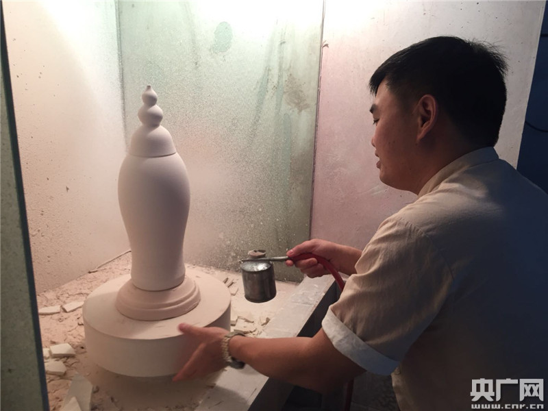 有一次,占紹林接了一位藝術家的一項工程,坯體完成后,因為跟要求相差兩毫米,不得不重做。但正因為此,占紹林從此對坯體厚薄可練就精確到毫厘的本事;因為文化課欠缺,他專程結交拜訪藝術院校老師,在與其合作中完善自己對制瓷工藝的理論修養。“我不僅要做一名工匠,我的更高追求是做一名藝術家,要有自己的作品流傳后世。”