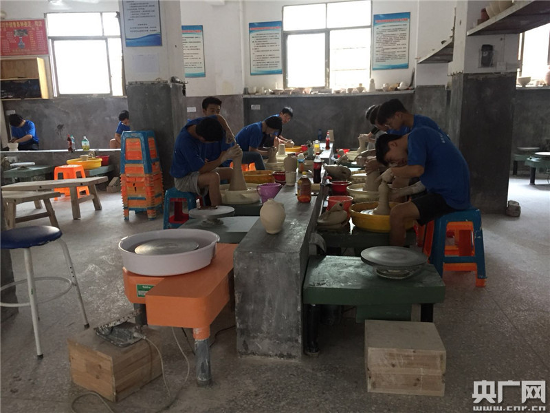 工作室有兩千多平,在景德鎮工坊中屬于中等規模,每層功能分明,一層用于學生學習拉坯;二三層用于修坯及陳列,四層展示的是占紹林及學生的作品,五層則用于親子體驗。