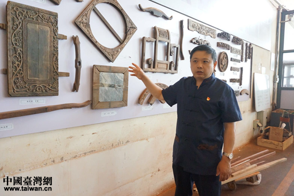 劉更生介紹“一木連做”的傳統工藝。(中國臺灣網 雍紫薇 攝)