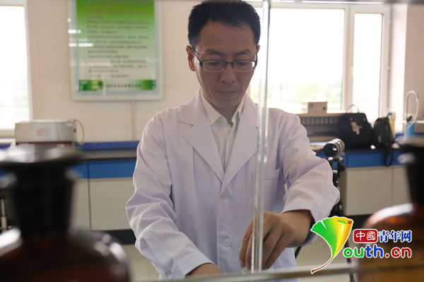 金立軍在化驗(yàn)。中國(guó)青年網(wǎng)見習(xí)記者 劉逸鵬 攝