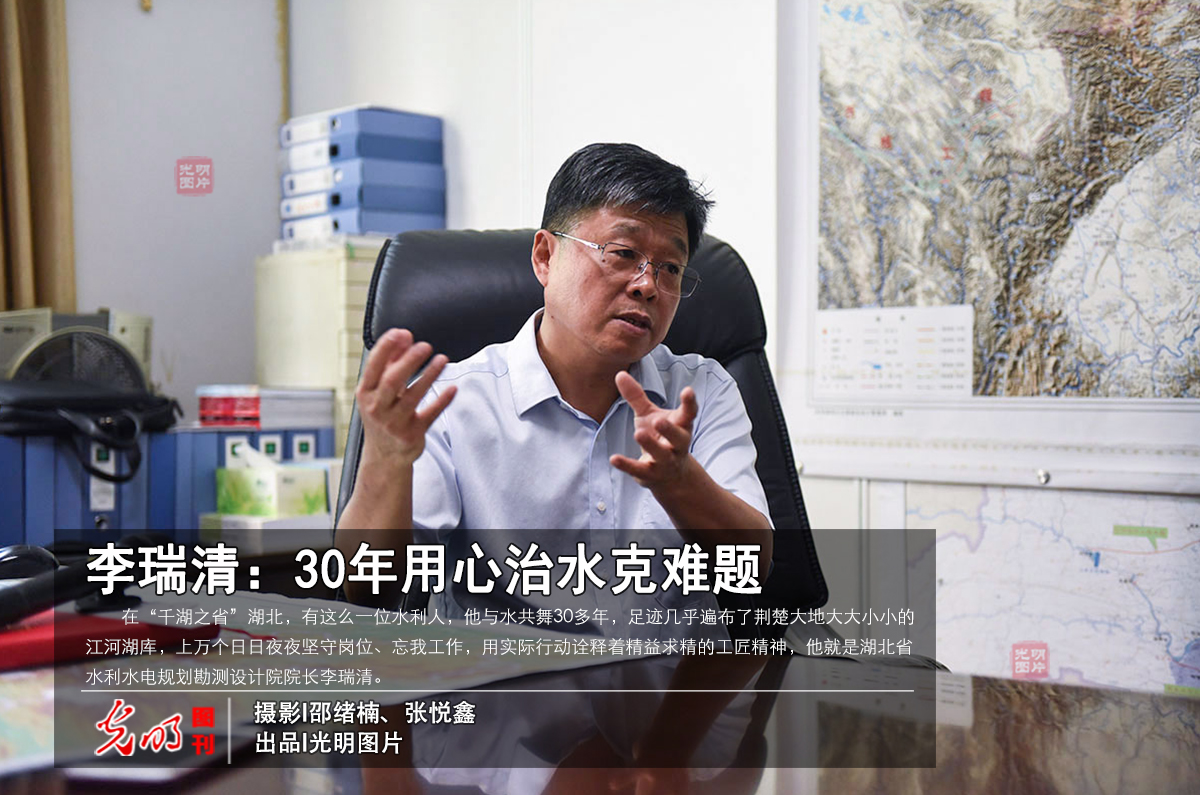 在“千湖之省”湖北,有這么一位水利人,他與水共舞30多年,足跡幾乎遍布了荊楚大地大大小小的江河湖庫,上萬個日日夜夜堅守崗位、忘我工作,用實際行動詮釋著精益求精的工匠精神,他就是湖北省水利水電規(guī)劃勘測設(shè)計院(以下簡稱“湖北水院”)院長李瑞清。(光明網(wǎng)記者 邵緒楠攝/光明圖片)