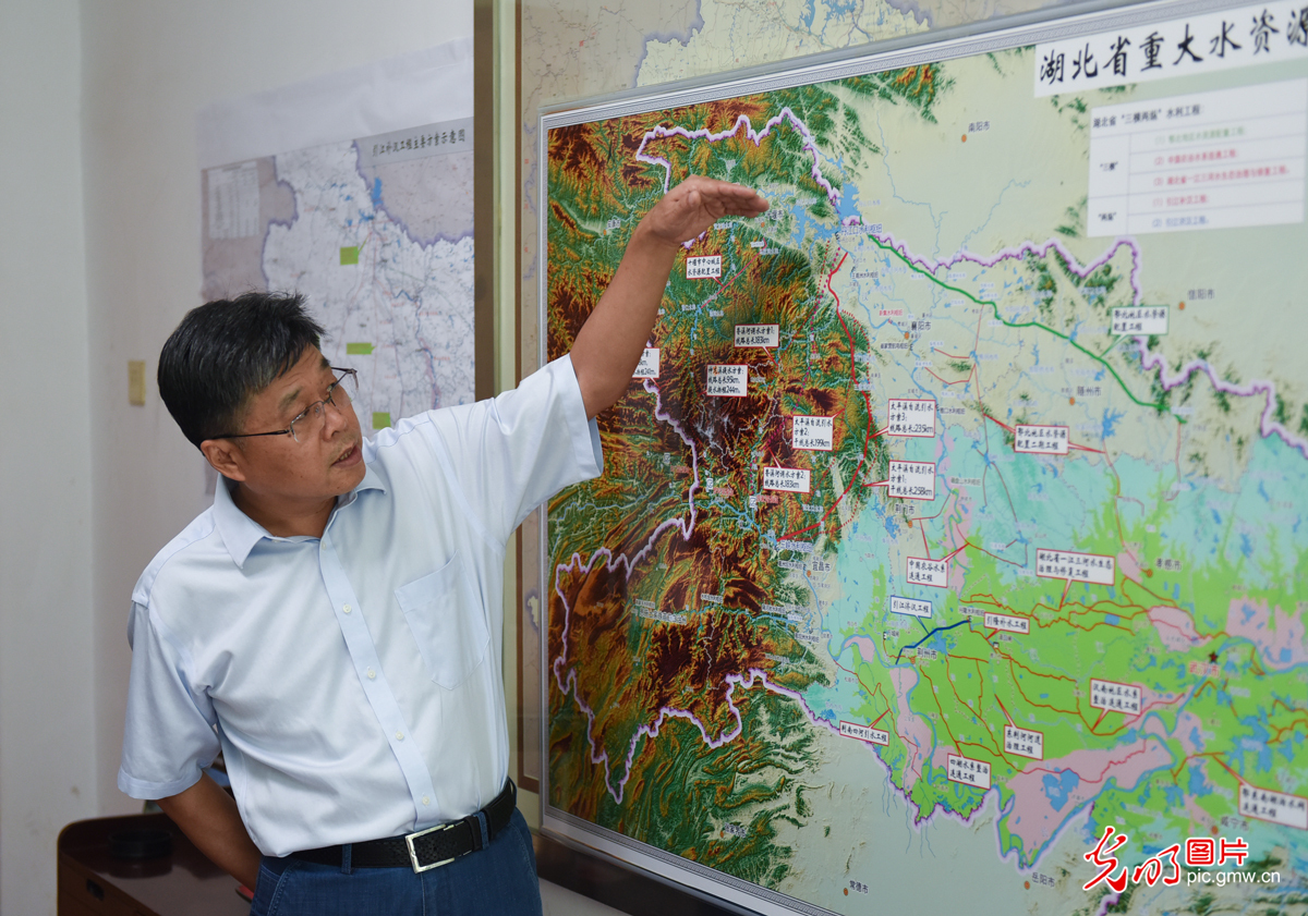 湖北的地理區(qū)位特殊,江漢平原“水袋子”三年兩澇,鄂北崗地“旱包子”十年九旱,曾面臨著水資源分布不均、水環(huán)境污染等問題。如何尋求新的路徑,從根上破解這種“瓶頸”。李瑞清帶領(lǐng)湖北水院專家技術(shù)團隊迎難而上,提出湖北省“三橫兩縱”水資源建設(shè)總體戰(zhàn)略格局。圖為2019年8月26日,李瑞清在介紹湖北省重大水資源配置。(光明網(wǎng)記者 邵緒楠攝/光明圖片)