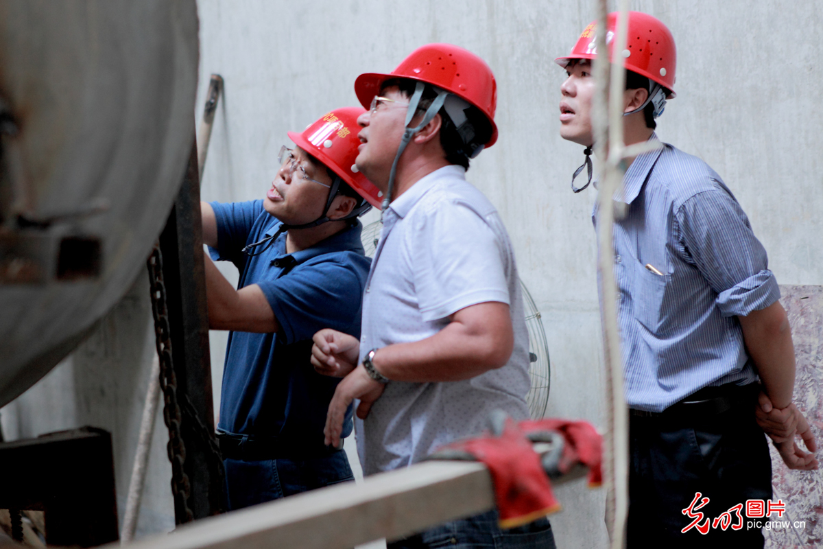 “干一行就要愛一行,只有放手去干才會知道能不能行,哪怕是碰一鼻子灰,也不能畏難不上。”下定決心后,李瑞清帶著團隊,立足湖北省西高東低的地勢條件和當?shù)厮Y源有限、客水豐富的獨特水情,以長江水補漢江水位依托,有利條件與治水理念相結(jié)合,通過“三橫兩縱”水利“藍圖”:以鄂北地區(qū)水資源配置工程、荊門市荊東補水工程、一江三河工程為橫軸,以引江補漢工程、引江濟漢工程為縱軸,建立全省水資源建設(shè)總體戰(zhàn)略格局。圖為李瑞清(左一)檢查鄂北工程項目進度。(湖北省水利水電規(guī)劃勘測設(shè)計院提供)