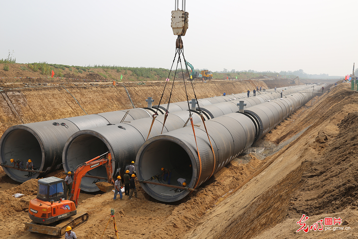 歷經(jīng)數(shù)年系統(tǒng)規(guī)劃和技術(shù)攻堅,目前,引江濟漢工程已建成通水,同時,引江補漢得以“長藤結(jié)瓜”的藍圖也已繪就。李瑞清還在充分論證基礎(chǔ)上,創(chuàng)造性提出了將引江補漢工程線路與江漢平原水生態(tài)文明建設(shè)“無縫對接”,“一線掛珠”地把沿線多座大中型水庫及多個大中型灌區(qū),像串珍珠項鏈似地串起來。圖為鄂北地區(qū)水資源配置工程生產(chǎn)性試驗項目EPC管道安裝現(xiàn)場。(湖北省水利水電規(guī)劃勘測設(shè)計院提供)