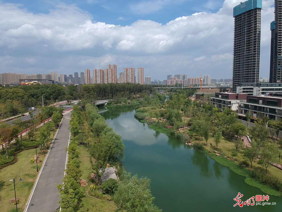 如今,漫步東湖港,昔日4.7公里長黑臭水體的東湖港,成為提升市民幸福指數(shù)的生態(tài)景觀公園。水清岸綠、生物多樣的水生態(tài)環(huán)境,讓東湖港“顏值”大升級,真正實現(xiàn)了“生態(tài)為民、生態(tài)惠民、生態(tài)利民”,讓人民群眾對美好生活的夢想成真,更為“美麗湖北”和“生態(tài)大武漢”建設(shè)寫下了濃墨重彩的一筆。圖為2019年8月27日,治理后的東湖港水清柳綠,與周圍城市環(huán)境相得益彰。(光明網(wǎng)記者 邵緒楠攝/光明圖片)
