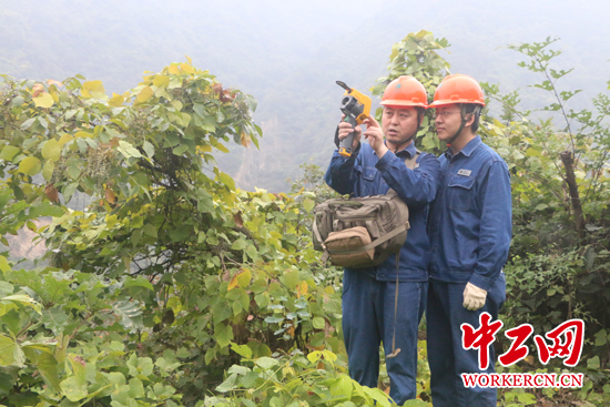 周紅亮(左)和同事在檢測(cè)電網(wǎng)線路。中工網(wǎng)記者 朱晶晶 攝