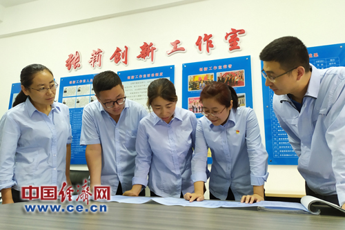 張莉(右二)與同事討論產品圖紙。經濟日報-中國經濟網記者佟明彪/攝