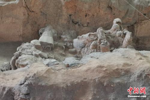 中新網客戶端西安9月18日電(張旭)秦始皇兵馬俑號稱世界第八大奇跡。實際上,秦始皇帝陵的兵馬俑在出土時,并不像現在人們所看到的那樣氣勢恢宏,多呈倒伏狀,甚至只有殘片散落在地面。