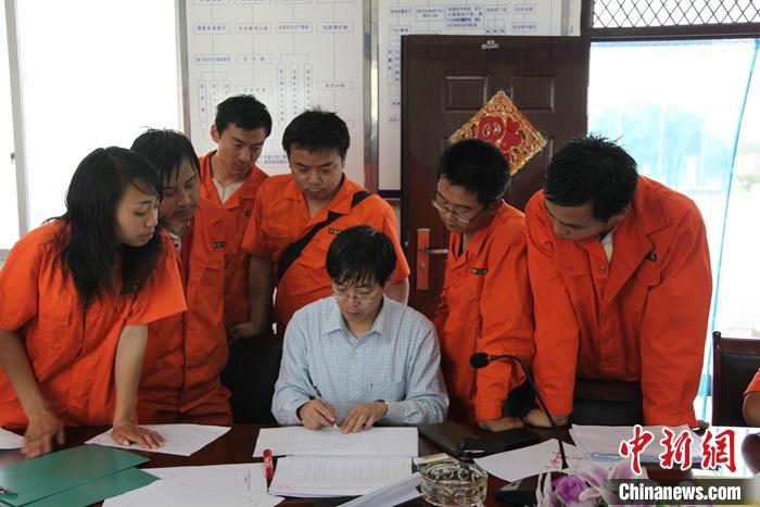 劉軍華在給測(cè)量人員講解工作。受訪者供圖