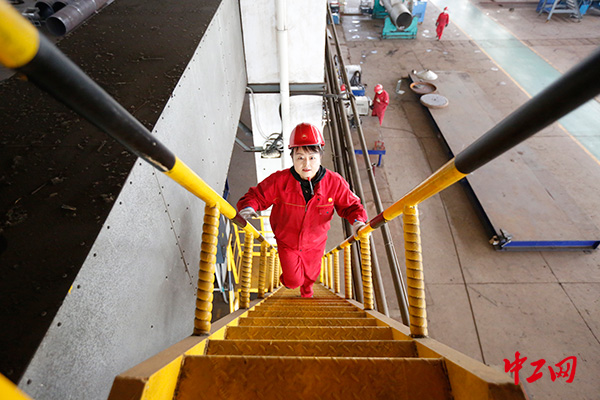 45級階梯、22.5米高,這是黃顏每天要攀爬的階梯和高度。在半空中,她每天看著幾十噸的重物在手里如同積木,轉移、搬運……沒錯,黃顏是天車操作手,簡稱“天車工”。
