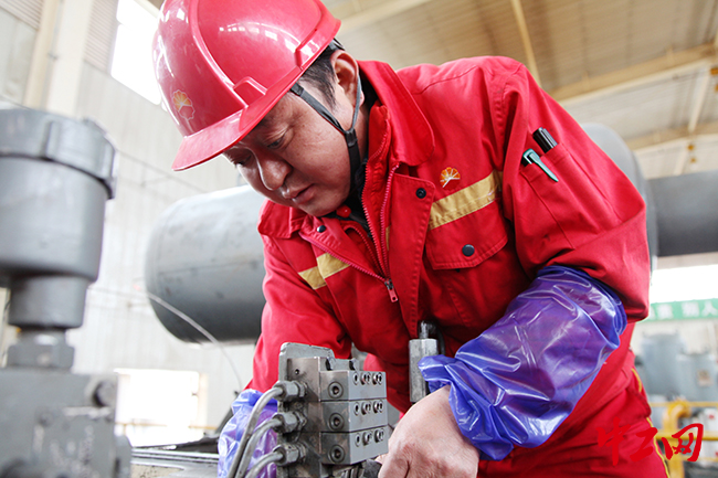 由于多年從事維修工作經常蹲著干活,董占明的膝蓋勞損,但他從未因身體原因而影響對設備的維修。不管是陰天下雨,還是白天黑夜,只要廠站設備出故障,他總是隨叫隨到,從無怨言。(楊軍 高雲 伏天資)
