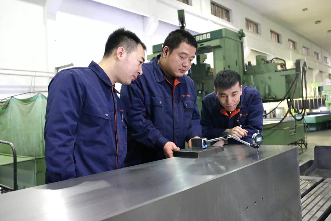 在與世界最先進壓力機設計團隊漢克公司合作過程中,馬恒昌小組承擔了大部分高精度中小件加工任務。在加工關鍵件拉緊螺桿過程中,工件尺寸超長,且兩端螺紋尺寸精度和形位公差等級之高前所未有。面對困難,工作室和小組成員沒有退縮,共同想出了增加過定位支撐架、快速切削、連續冷卻、合理選用刀具、設計輔助定位基準等辦法,完成了生產任務。