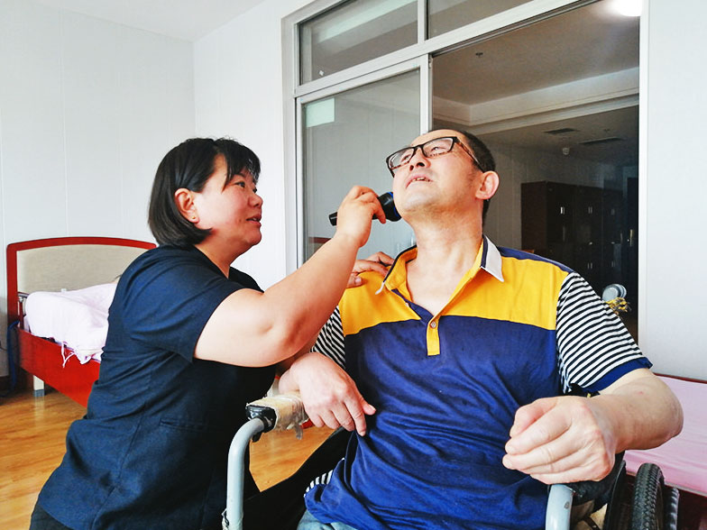 在張盈負責的院區里,有一位特殊的“老年人”,這是養老院里一對老夫婦的孩子,在唐山大地震中雖然僥幸撿回生命,但是智力卻嚴重受損。
