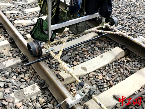 怎樣才能消除隱患,確保施工安全?中鐵武漢電氣化局浦梅項(xiàng)目部有自己的小妙招。在接觸網(wǎng)施工現(xiàn)場(chǎng)可以看到,有兩根鋼管與作業(yè)梯車(chē)的底盤(pán)垂直交叉,一前一后,用卡箍抱接底盤(pán)骨架,在底盤(pán)骨架下方,和鋼軌保持著1-2公分的垂直距離,網(wǎng)工們稱呼其為“防傾桿”。這兩根不起眼的鋼管,是怎么發(fā)揮“防止梯車(chē)傾覆”作用的呢?