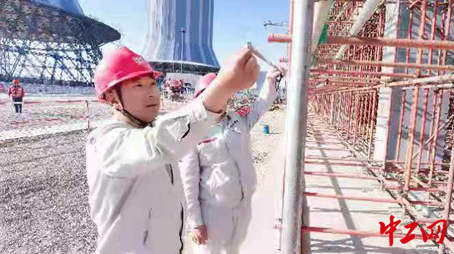 周小兵檢查驗收現場腳手架。攝影 曹雨軒