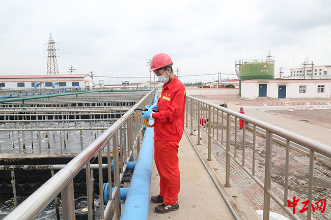 8月23日上午,冀東油田油氣集輸公司高尚堡聯合站化驗女工張晶瑩和孫倩順著扶梯登上好氧池檢測水中溶解氧,她們需要找到24個不同的測試點,將測試儀器下到池子里,再將儀器顯示數據分段記錄下來,這只是她們工作的“冰山一角”。