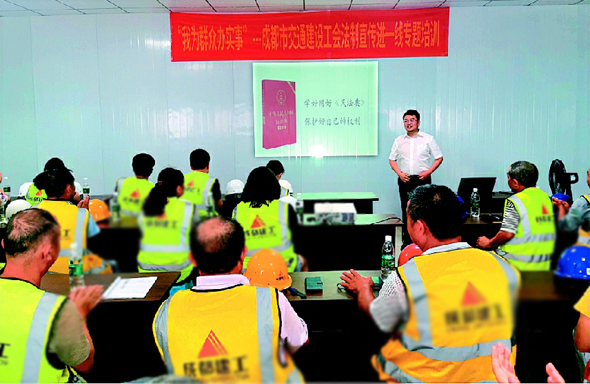 多年的辦案中,杜偉總結出一個經驗,由于不少職工(農民工)兄弟不懂法律知識,缺乏證據保存,本來很簡單的事,到頭來維權難度很大。于是,杜偉十分重視職工法治宣傳培訓工作,抓住時機到處進行勞動法律法規知識宣講。作為省律協勞動法專業律師,他根據農民工的實際需求,在四川省、成都市兩級工會的組織安排下,到成都各在建項目工地,川內農民工較為集中的行業企業,通過以案說法的形式,結合《民法典》《勞動法》《勞動合同法》《社會保險法》《工會法》《安全生產法》《職業病防治法》《工傷保險條例》《保障農民工工資支付條例》等相關法律法規規定進行普法宣傳,引導職工(農民工)以及廣大工會干部尊法、學法、守法、用法,提升法律意識,增強法治素養。據悉,今年以來,杜偉提供現場咨詢8次,解答各類法律咨詢100余件;開展普法講座共計32場,受益人群4000余人次。
