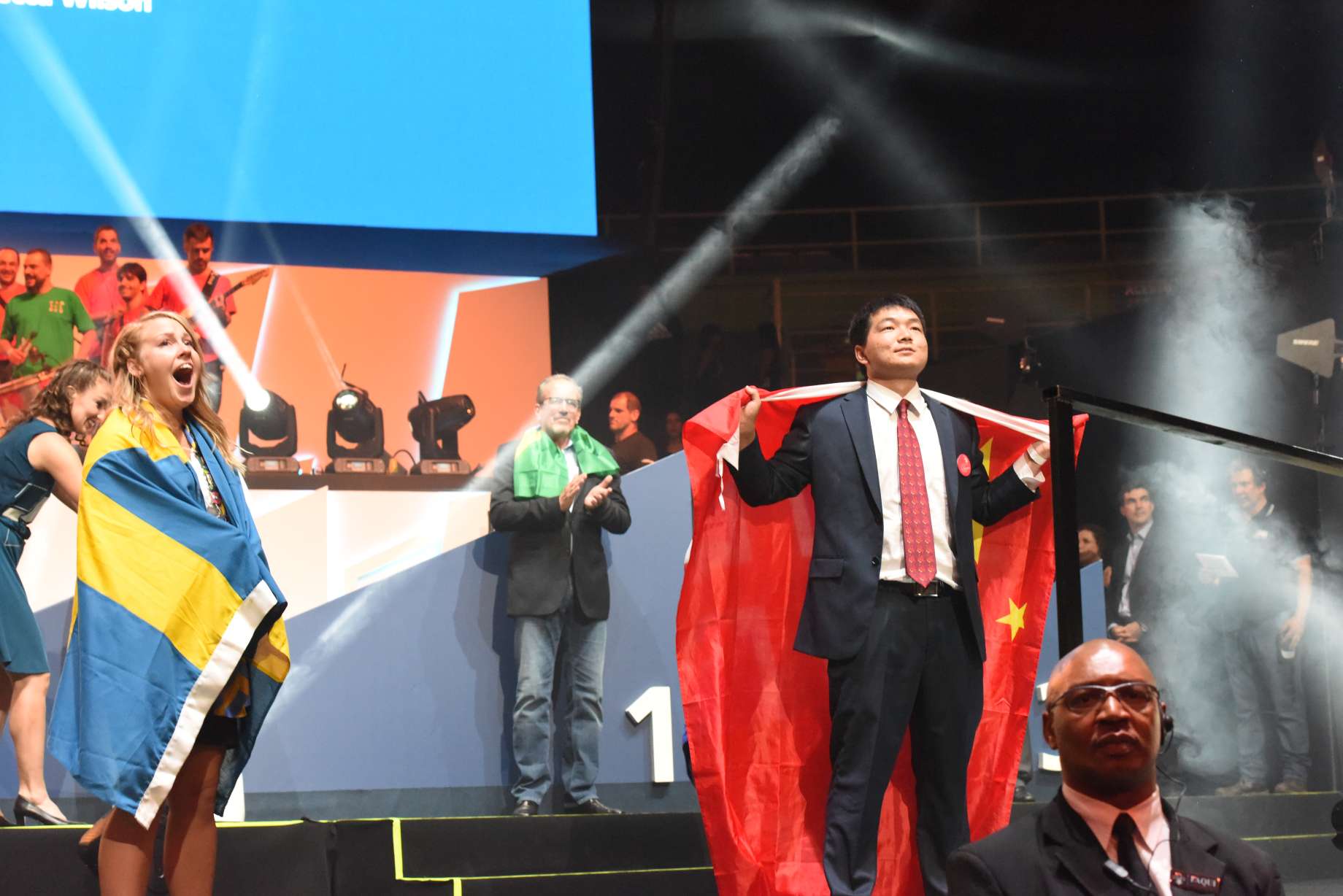 圖為楊金龍在第43屆世賽獲得世界冠軍后合影。受訪者供圖