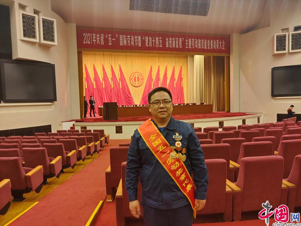 2021年 4月27日,張霽明在北京人民大會堂領取“全國五一勞動獎章”(周一峰 攝)
