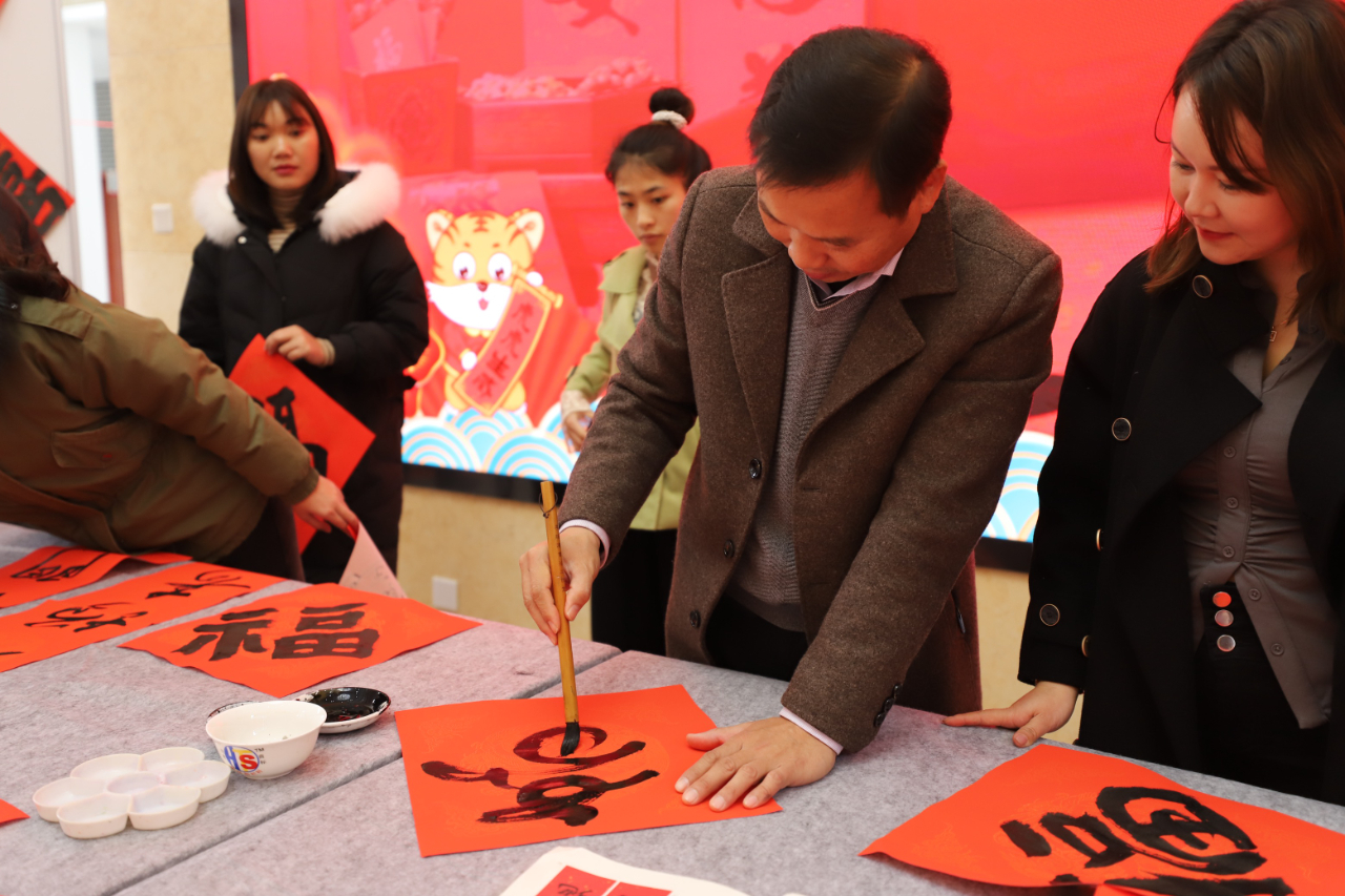 活動現場,到場職工群眾們翻閱春聯書譜內容,市書法家協會的4位書法老師為職工群眾鋪紙研墨、即席揮毫。大家排著隊一邊欣賞一邊等著領春聯,手捧著一幅幅寓意吉祥的春聯,收獲了今年的“第一波”年貨,喜悅之情溢于言表。