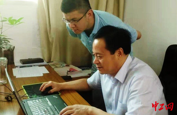 肖仕云(左)在指導物資人員實行電商采