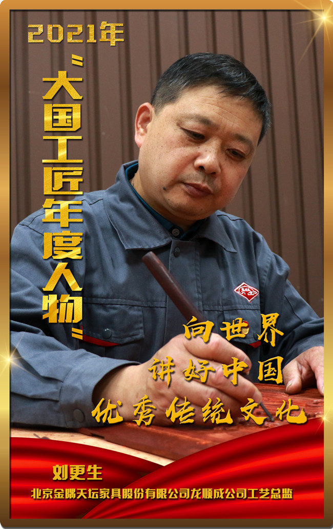 劉更生是中國非物質文化遺產京作硬木家具制作技藝第五代代表性傳承人、北京金隅天壇家具股份有限公司龍順成公司工藝總監。