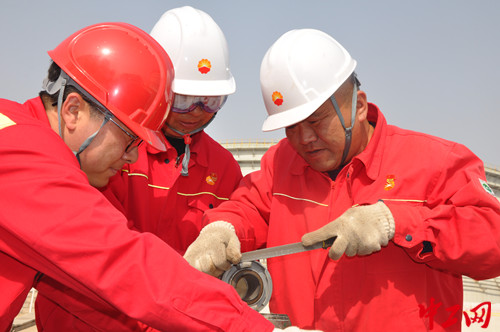 3月15日,中國石油冀東油田油氣集輸公司原油儲備庫維修工房人頭攢動,熱鬧非凡。只見員工們有的拿游標卡尺測數據,有的用角磨機慢打細磨,有的用銼刀精雕細琢,大家分工明確,各司其職。