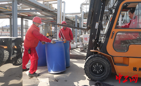 原來,高尚堡聯合站天然氣裝置氨液添加作業時,每次需要5到6名身強力壯的員工將10多桶氨液從庫房搬運到100多米遠的現場,再將一桶桶重達170千克的氨液滾到添加口,合力將氨液倒進池子里,不僅費時費力,勞動效率也不高。
