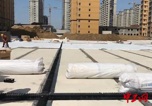 據介紹,這套“PDS防虹吸排水收集系統”,通過排水異型片自粘聚酯土工布卷材長邊與短邊的粘接固定,將水匯集到專用排水槽中,并在虹吸管的引流下流入蓄水池,最終,蓄水池中的水將被二次利用。利用這套系統可以解決大面積頂板找坡困難且造價高昂的問題,同時,也解決了雨季頂板綠化植物長期浸泡問題,節省了后期綠化維護費用。