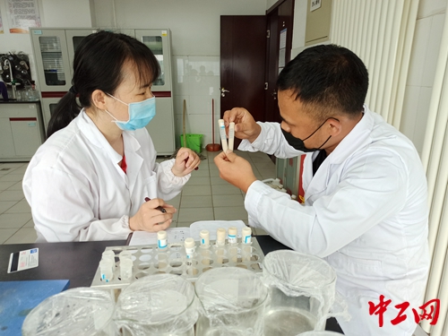 科研人員正在評(píng)價(jià)破膠液的防膨性能
