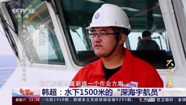 中國海洋石油集團有限公司海油工程ROV監督 龔元龍:我當時試了兩三次,就在我想做進一步嘗試的時候,這時候韓超拍了一下我的肩膀,暫停,我們必須要重新換一個作業方案。