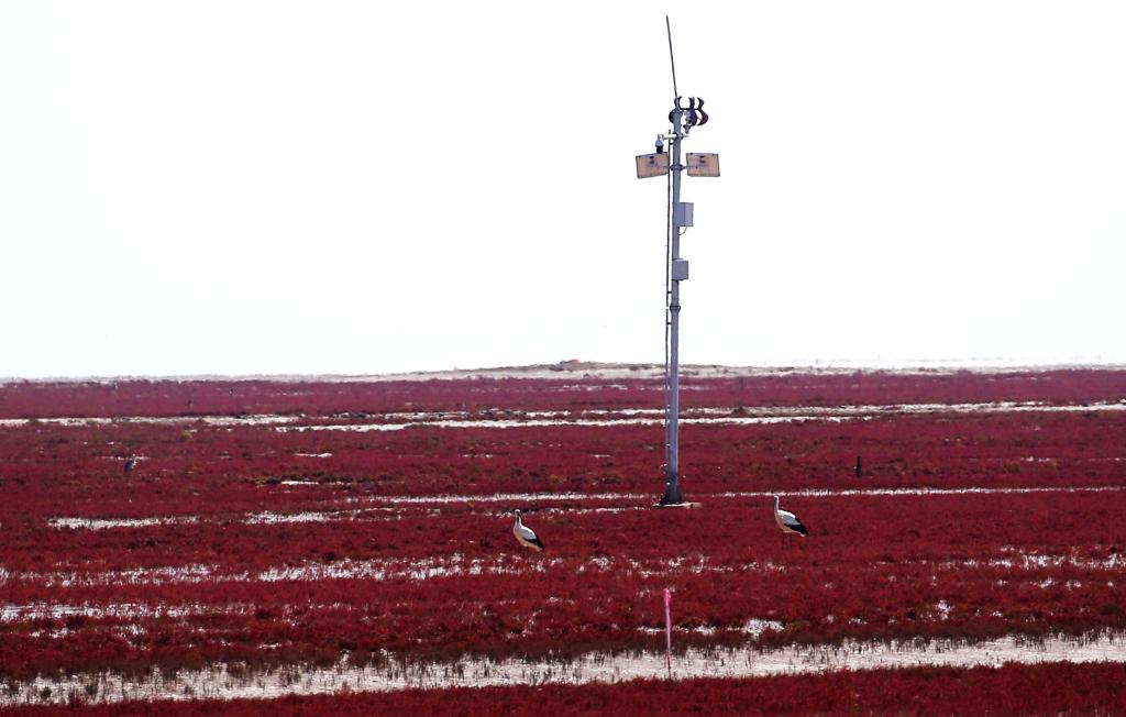 這是山東黃河三角洲國家級自然保護區里的生態環境監控設備(資料照片)。新華社發