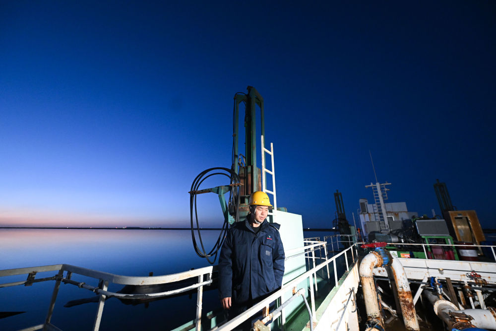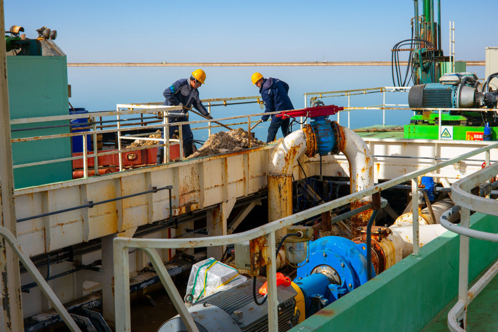 賀連福介紹,鹽礦采集工作不輕松,船身各部位的清潔需要人工操作,而且水采工作徹夜不停,船上需要船員24小時輪班值守,防止管道堵塞并及時排除各類故障。以前船上設施簡陋、淡水匱乏,如今國產水采船上很多功能都已經實現自動化控制,生活條件也有很大改善。