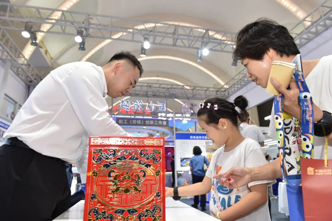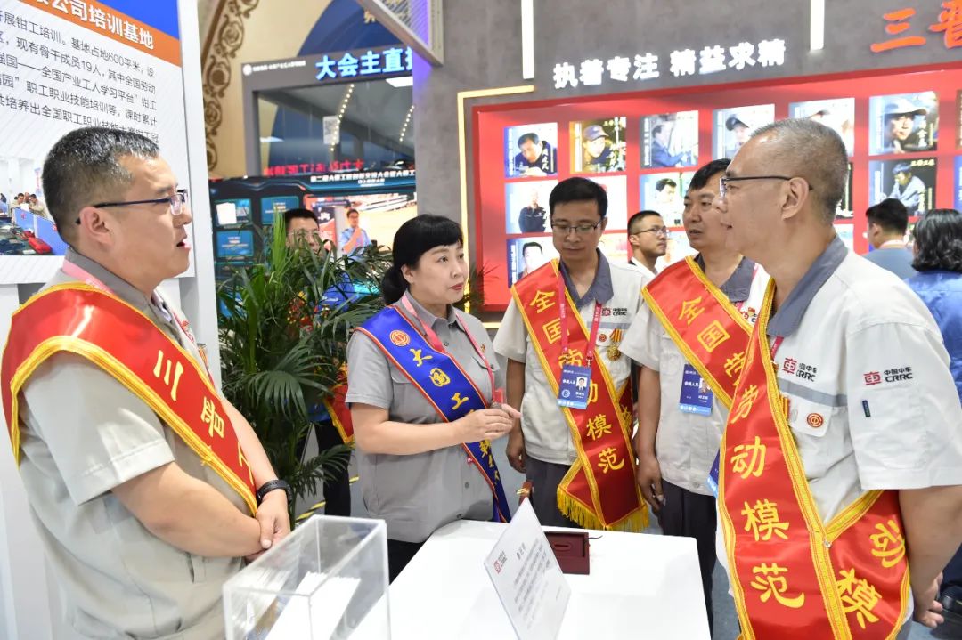 展區內,講解員帶領參觀者參觀著山西展區內的每一項創新成果,勞模工匠站在展臺前,配合著講解員,熱情地向參觀者介紹產品的具體參數、設計思路。面對其它展區來交流參觀的同行們,三晉工匠們與他們充分交流、激烈討論,互相分享著自己的創新經驗與心得。