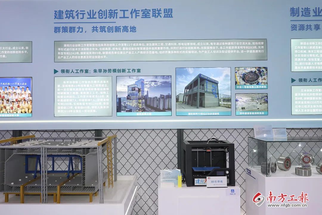 “吃進”混凝土,吐出“一座房子”。一棟高7.2米,面積約230平方米的雙層小樓,不到60個小時就能“建成”。“我們展示的是小型打印機,它和建筑3D打印機原理相同,可展示3D打印全過程。觀眾可以現場看它打印一座深圳地標‘地王大廈’模型。” 中建二局華南公司基礎設施分公司黨總支副書記、工會主席晁俊鵬介紹,3D打印技術是公司朱早孫創新工作室的成果,國際首例原位3D打印二層示范建筑就通過該技術完成。